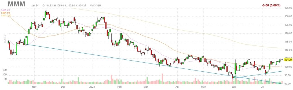 MMM rose to $106.83 (+2.46%) in pre-market trading.