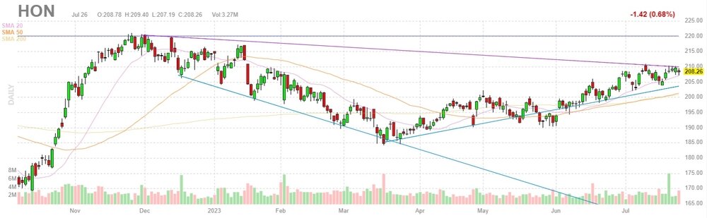 HON fell to $206.50 (-0 85%) in pre-market trading.