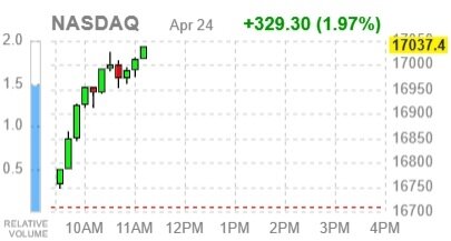 Nasdaq 100 | 19166.00 | +362.00 | +1.93% |