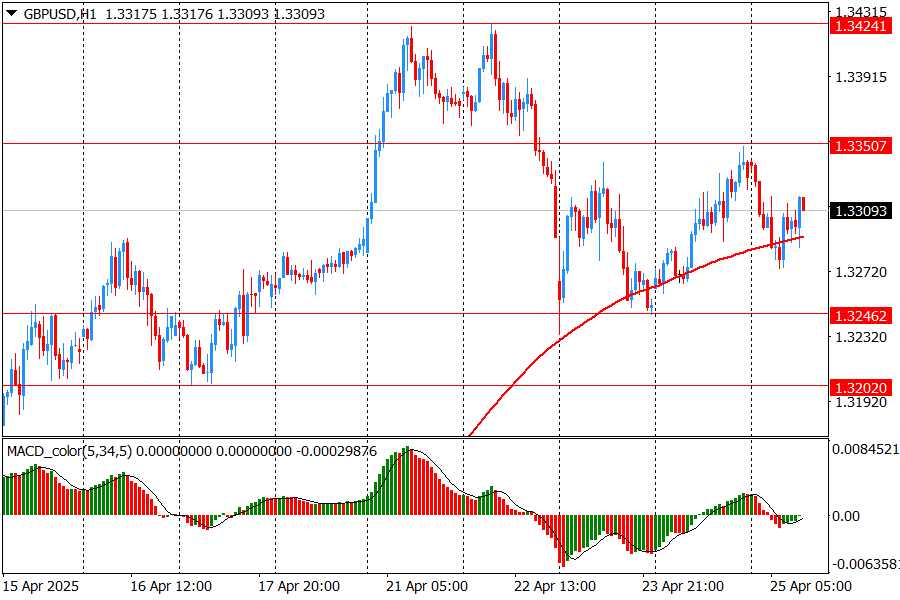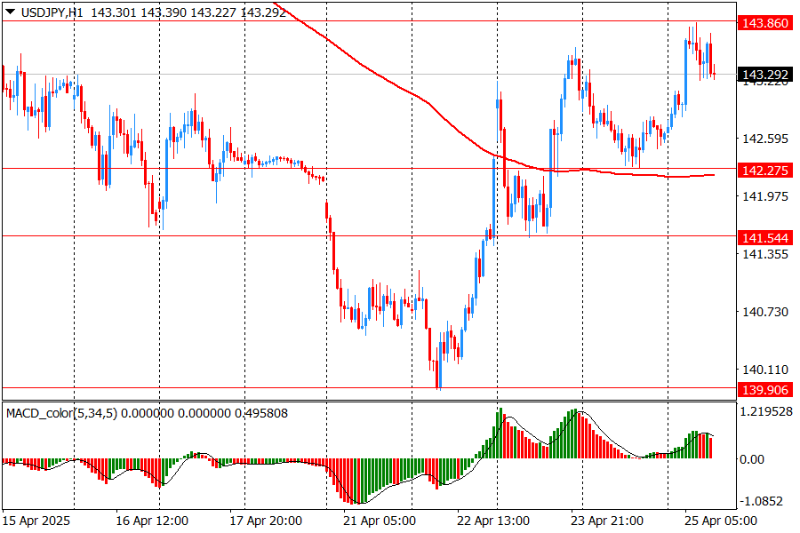 Пара USD/JPY выросла до 143,85, отражая рост интереса инвесторов к рисковым активам. В то же время евро и фунт снизились, несмотря на сильные данные по розничным продажам Великобритании, которые показали рост на 0,4% в марте против ожидаемого снижения на 0,4%. Однако давление со стороны укрепившегося доллара нивелировало позитивную статистику.