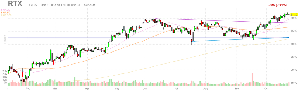 RTX rose to $91.60 (+0.33%) in pre-market trading.