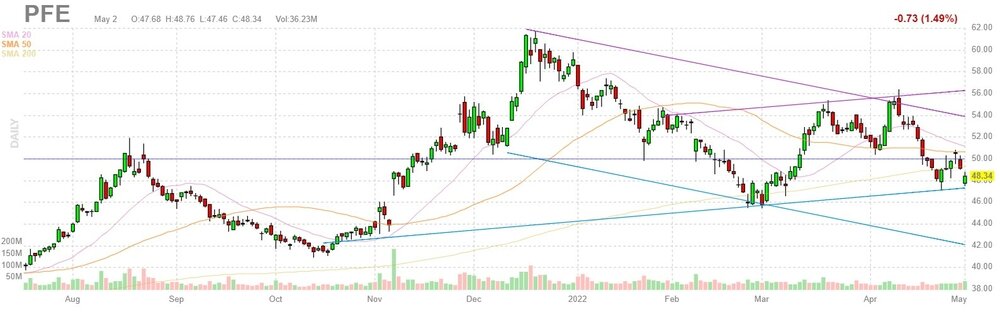 PFE fell to $47.70 (-1.32%) in pre-market trading.