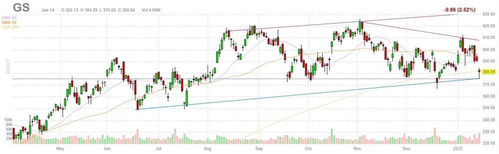 Акции GS на премаркете снизились до уровня $370.00 (-2.87%).