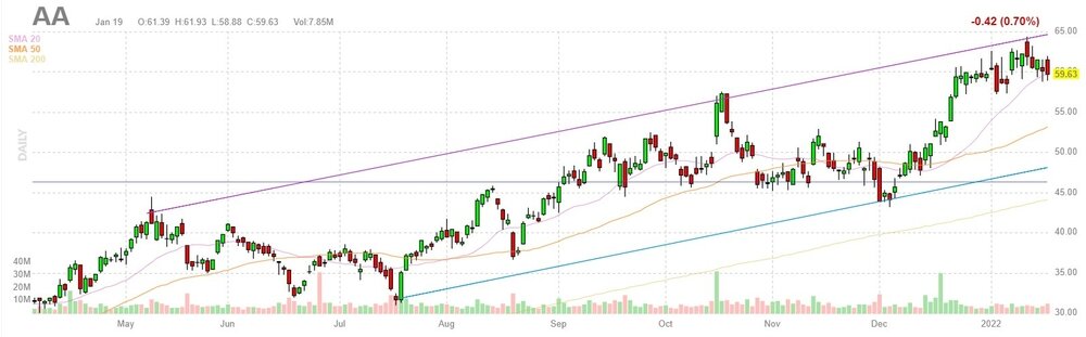 Акции AA на премаркете выросли до уровня $60.83 (+2.01%).