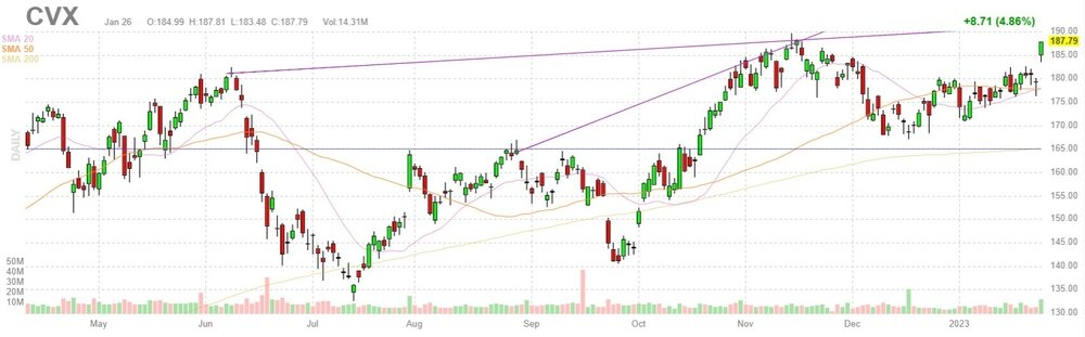 Согласно обнародованному отчету, прибыль компании Chevron (CVX) по итогам четвертого квартала 2022 финансового года (ФГ) достигла $4.09 в расчете на одну акцию (против $2.56 на одну акцию в четвертом квартале 2021 ФГ), что оказалось ниже среднего прогноза аналитиков на уровне $4.29 на одну акцию.