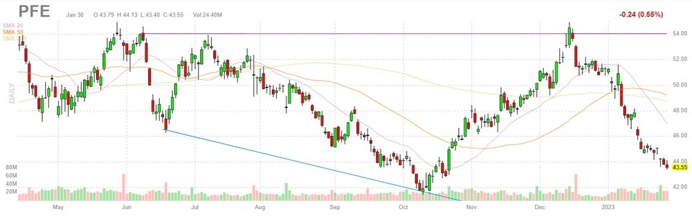 Согласно обнародованному отчету, прибыль компании Pfizer (PFE) по итогам четвертого квартала 2022 финансового года (ФГ) достигла $1.14 в расчете на одну акцию (против $1.08 на одну акцию в четвертом квартале 2021 ФГ), что оказалось выше среднего прогноза аналитиков на уровне $1.04 на одну акцию.