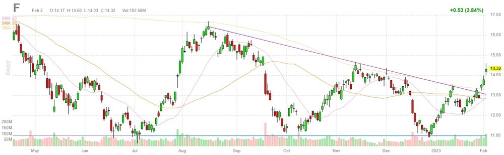 Согласно обнародованному отчету, прибыль компании Ford Motor (F) по итогам четвертого квартала 2022 финансового года (ФГ) достигла $0.51 в расчете на одну акцию (против $0.26 на одну акцию в четвертом квартале 2021 ФГ), что оказалось ниже среднего прогноза аналитиков на уровне $0.62 на одну акцию.