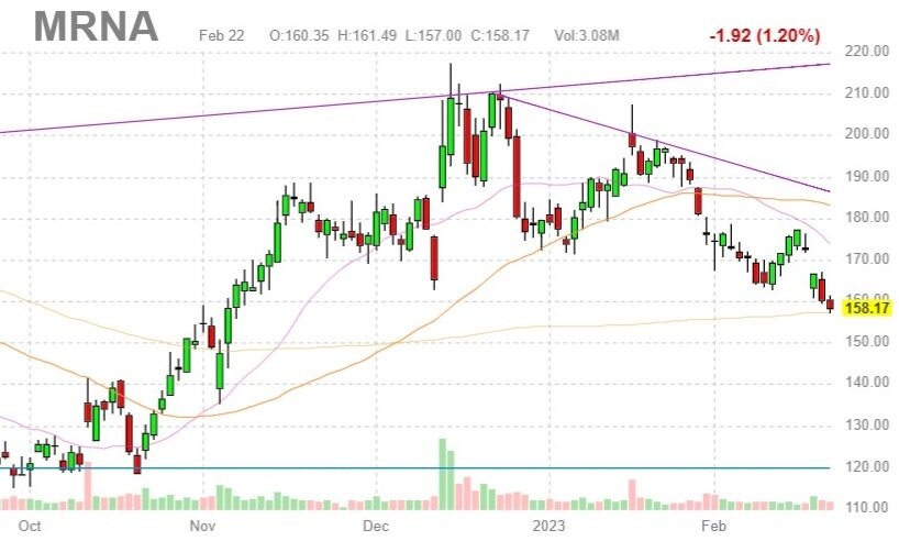 Согласно обнародованному отчету, прибыль компании Moderna (MRNA) по итогам четвертого квартала 2022 финансового года (ФГ) достигла $3.61 в расчете на одну акцию (против $11.29 на одну акцию в четвертом квартале 2021 ФГ), что может быть несопоставимо со средним прогнозом аналитиков на уровне $4.60 на одну акцию.
