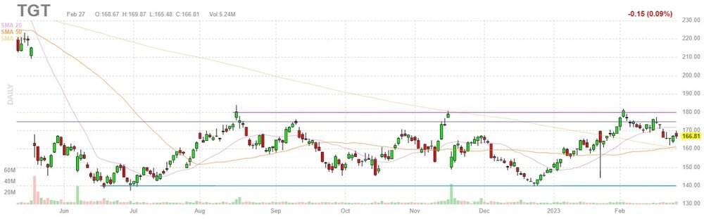 Акции TGT на премаркете выросли до уровня $169.30 (+1.49%).