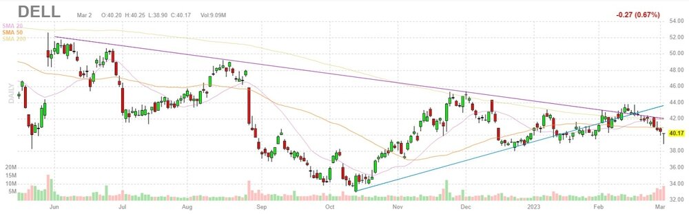 Согласно обнародованному отчету, прибыль компании Dell Technologies (DELL) по итогам четвертого квартала 2023 финансового года (ФГ) достигла $1.80 в расчете на одну акцию (против $1.72 на одну акцию в четвертом квартале 2022 ФГ), что оказалось выше среднего прогноза аналитиков на уровне $1.64 на одну акцию.