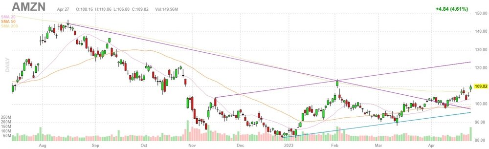 Согласно обнародованному отчету, прибыль компании Amazon (AMZN) по итогам первого квартала 2023 финансового года (ФГ) достигла $0.31 в расчете на одну акцию (против -$7.56 на одну акцию в первом квартале 2022 ФГ), что оказалось выше среднего прогноза аналитиков на уровне $0.22 на одну акцию.