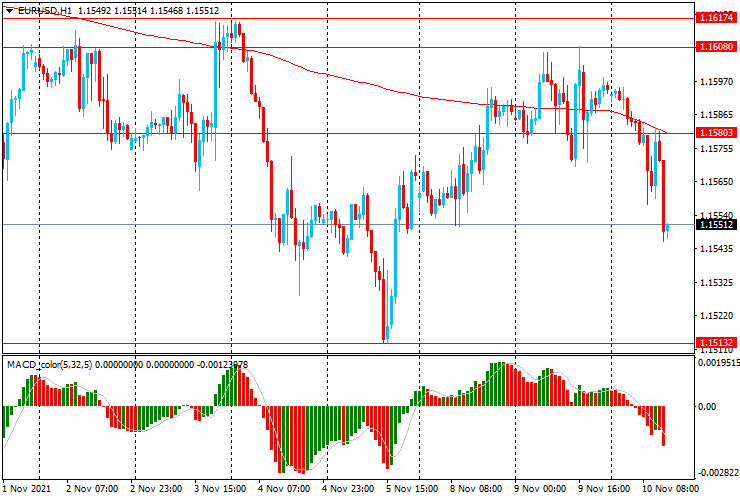 ЕUR/USD: пара торгуется в основном со снижением с $1.1595 до $1.1545
