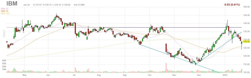 Согласно обнародованному отчету, прибыль компании IBM (IBM) по итогам четвертого квартала 2021 финансового года (ФГ) достигла $3.35 в расчете на одну акцию (против $2.07 на одну акцию в четвертом квартале 2020 ФГ), что оказалось выше среднего прогноза аналитиков на уровне $3.29 на одну акцию.
