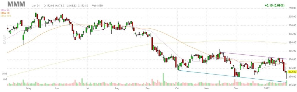 Акции MMM на премаркете выросли до уровня $173.98 (+0.68%).