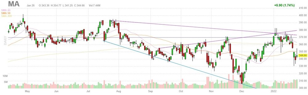 Акции MA на премаркете снизились до уровня $338.00 (-1.93%).