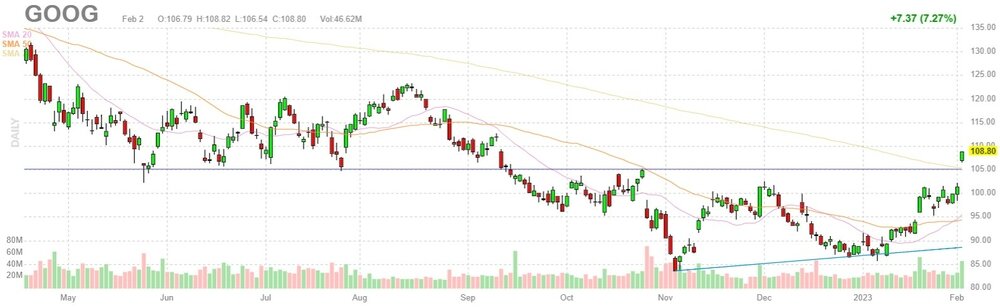 Согласно обнародованному отчету, прибыль компании Alphabet (GOOG) по итогам четвертого квартала 2022 финансового года (ФГ) достигла $1.05 в расчете на одну акцию (против $30.69 на одну акцию в четвертом квартале 2021 ФГ), что оказалось ниже среднего прогноза аналитиков на уровне $1.19 на одну акцию.