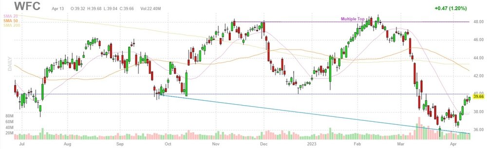 Акции WFC на премаркете выросли до уровня $40.85 (+3.00%).