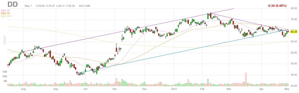 Акции DD на премаркете снизились до уровня $67.00 (-3.43%).