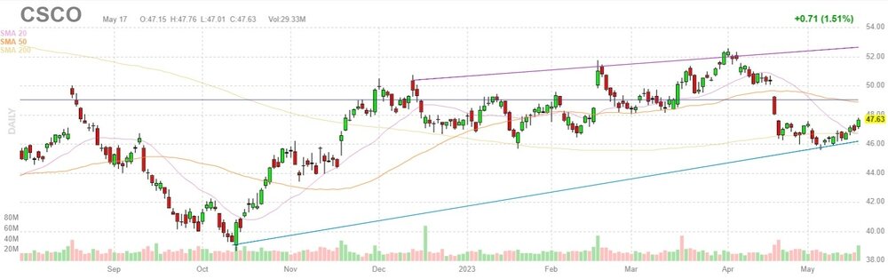 Акции CSCO на премаркете снизились до уровня $45.55 (-4.37%).